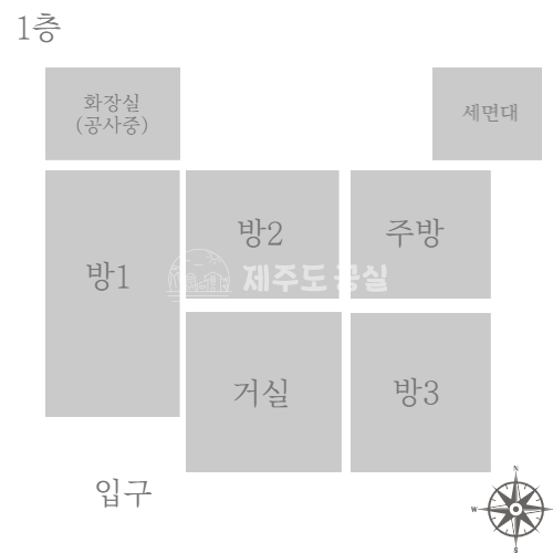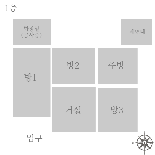 1층(25평/주인세대) - 방3 / 화1 / 거실 / 주방