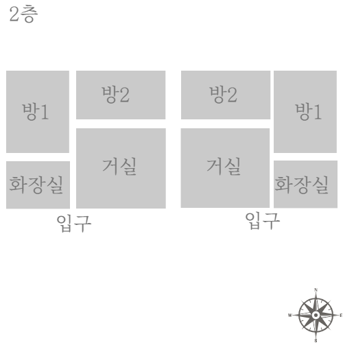 2층(23평/2가구) - 방2 / 화1 / 거실 겸 주방