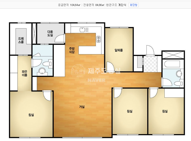 공급 104.64㎡ 32평 / 전용 84.86㎡ 26평 (전용률 81%) 평